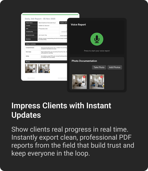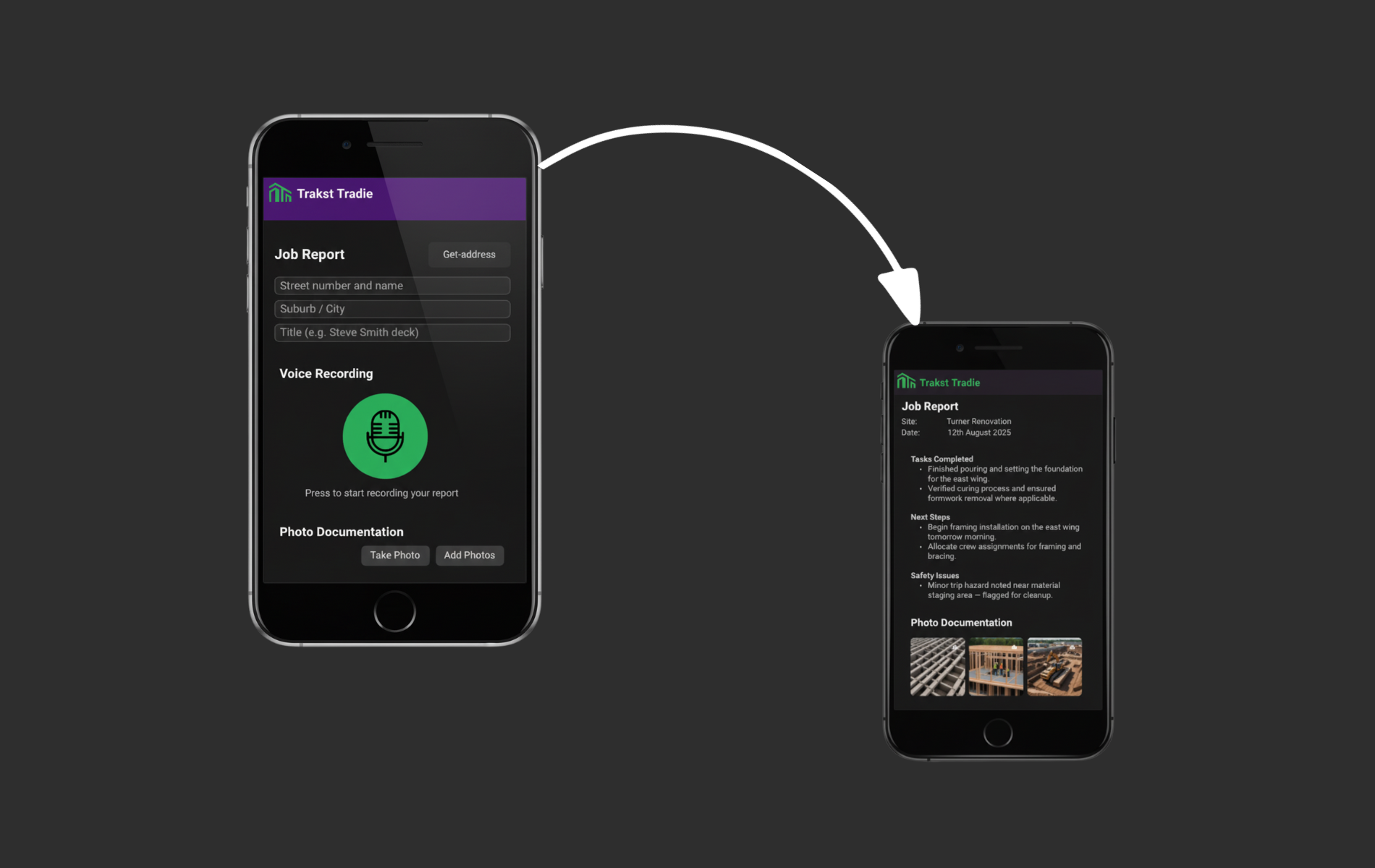 The simple reporting app built for tradies and small contractors who want to stay on top of jobs without the admin grind.